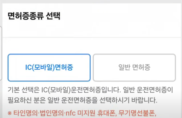 3. 면허 종류 선택: IC 면허증(스마트폰 발급 가능) 또는 일반 면허증
