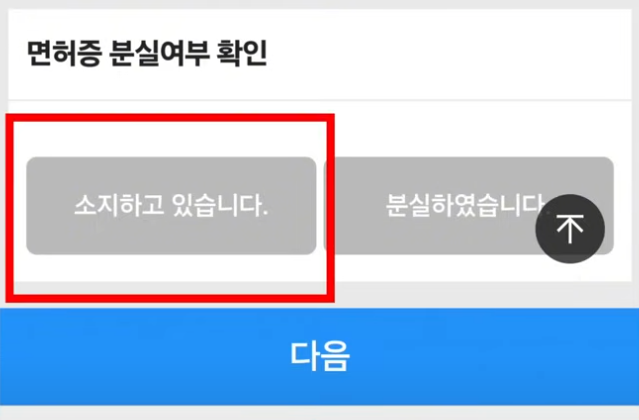 2. 면허증 분실 여부 선택 (분실 시 재발급 수수료 발생)