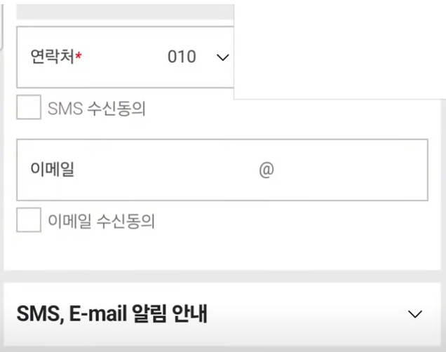 1. 연락처·이메일 입력, 안내 수신 동의 여부 선택