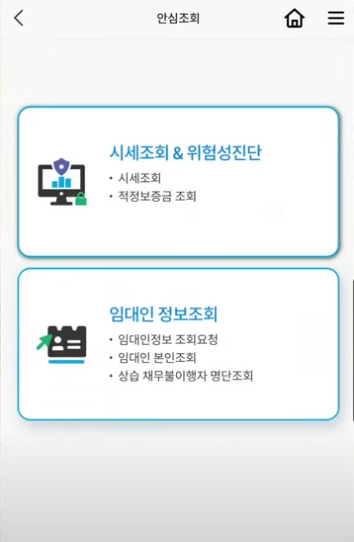 전월세 계약 전, 이 집이 안전한 집인지 궁금하시죠? 이제는 허그 안심 전세 앱 하나면 충분합니다. 앱 홈 화면에서 ‘안심 조회’ 기능을 선택하면, 매물의 시세 정보와 위험성 진단을 한눈에 볼 수 있어요.