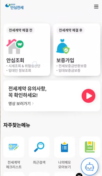 안심전세-임차주택 위험 진단부터 전세보증 가입까지 주택도시보증공사(HUG) 안심전세app으로 해결하세요.