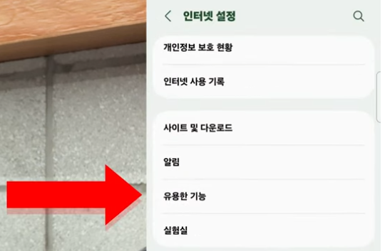 유튜브를 들으며 다른 앱을 사용하거나 화면을 꺼도 소리가 계속 나오게 하려면, 동일한 삼선 메뉴 > 설정 > 유용한 기능 메뉴로 이동하세요.
