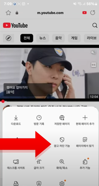 여기서 'Samsung Internet용 AdBlock' 같은 확장 기능을 활성화하면 유튜브 영상 재생 중 더 이상 광고가 뜨지 않습니다.