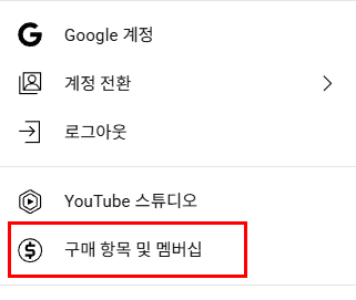 2) 메뉴에서 "구매 항목 및 멤버십" 선택