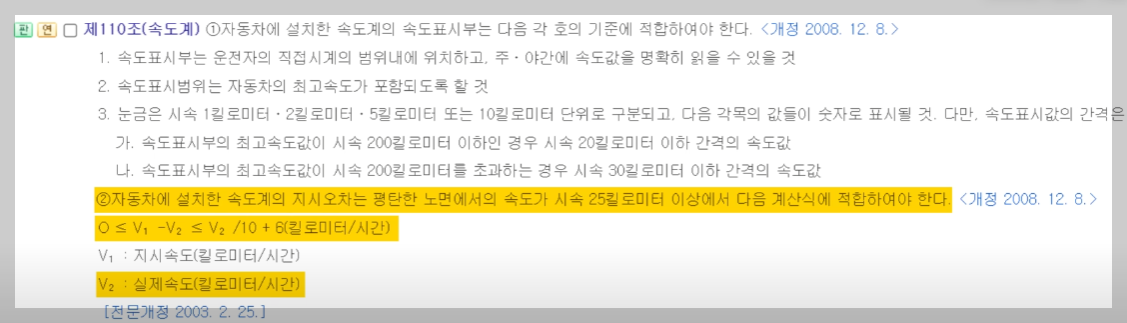 그리고 법적으로도 차량 계기판은 실제 속도보다 낮게 표시되어서는 안 되고, 최대 +10%에 +6km까지 더 빠르게 표시되도록 허용되어 있어요. 그래서 제조사들이 계기판 속도를 의도적으로 높게 설정하는 거죠.