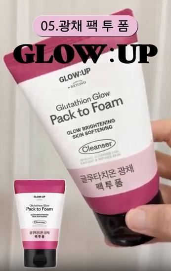 이건 폼 클렌저인데, 안에 빨간색 글루타치온 캡슐이 있어요. 캡슐이 다 녹을 때까지 롤링해서 세안하면 맑고 밝아진 느낌! 세정력도 좋아서 1차 세안으로 딱이에요.