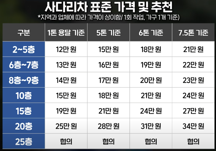 ✔ 평일 이사 추천: 주말보다 평일이 비교적 저렴합니다.