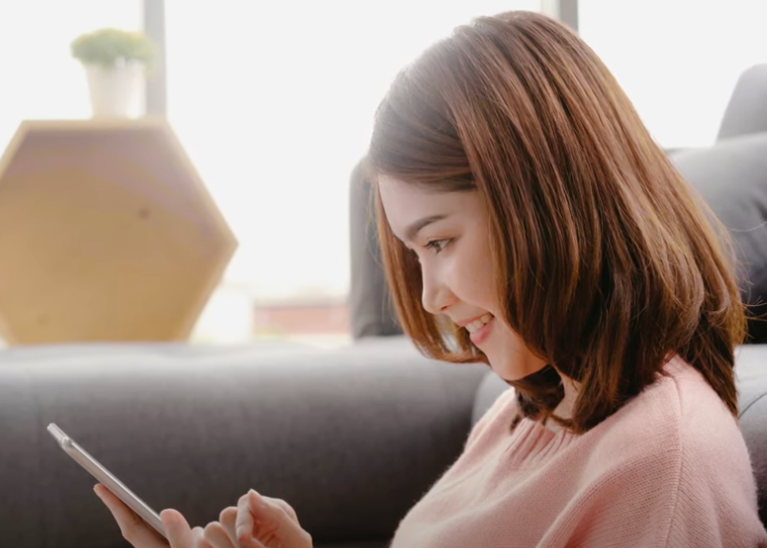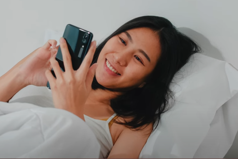 핸드폰을 가슴보다 약간 아래로 두고, 목이 일직선이 되도록 의식해 주세요.
