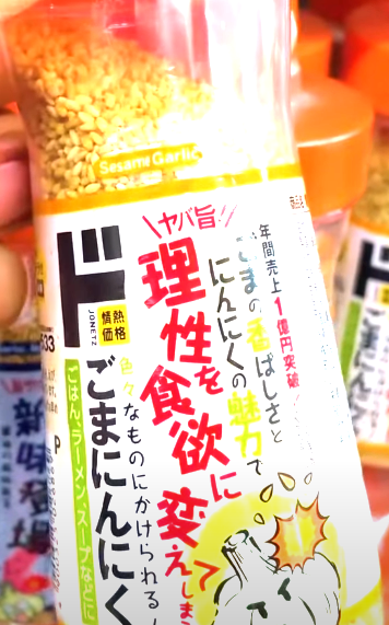 돈키호테의 히트 상품 중 하나로, 참깨와 마늘의 고소하고 매콤한 조화가 특징입니다. 밥, 샐러드, 볶음 요리 등 다양한 요리에 활용할 수 있는 만능 조미료입니다.
