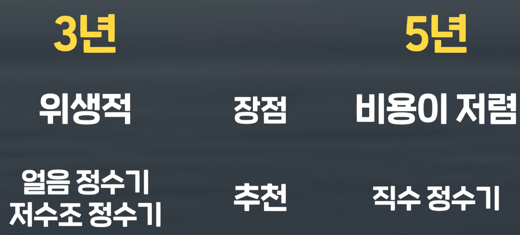 • 3년 약정: 위생적인 관리가 필요한 얼음 정수기, 저수조형 정수기에 적합.