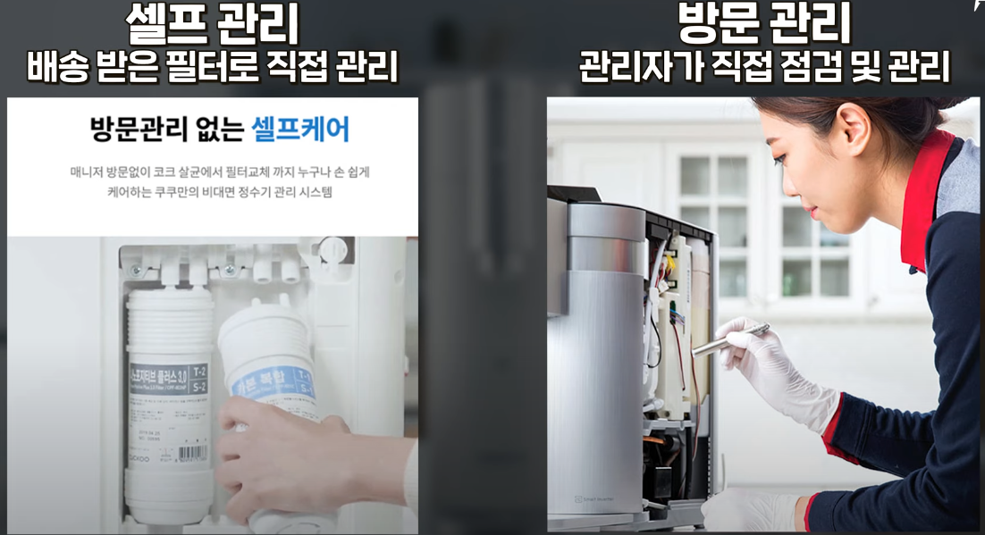 정수기 관리 서비스는 ‘방문 관리’와 ‘셀프 관리’로 나뉘는데요.
