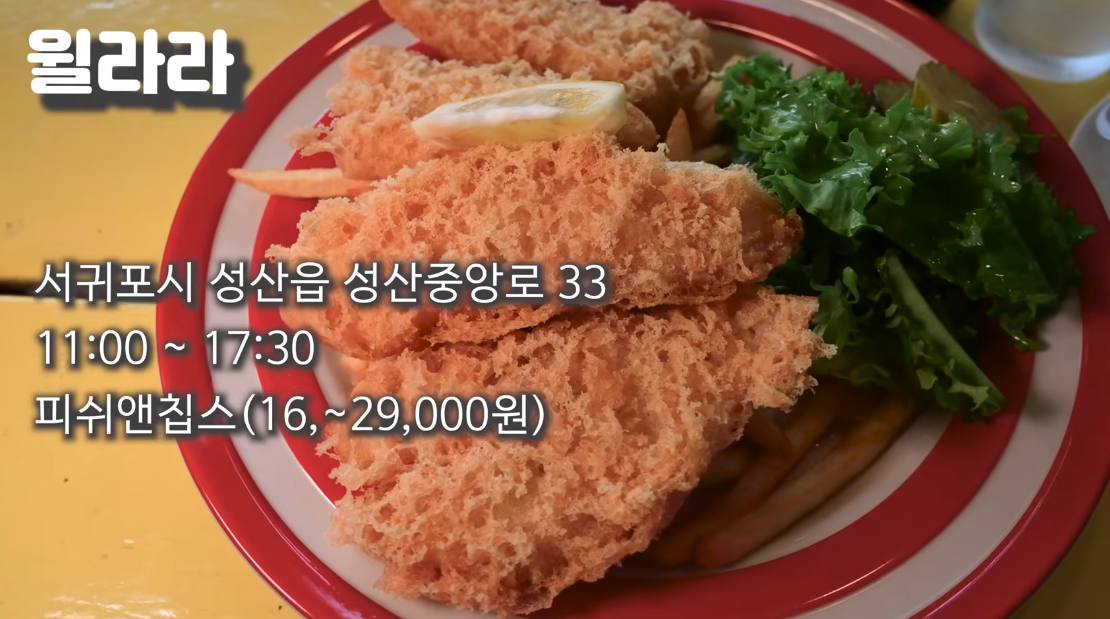 성산 일출봉 근처에서 찾을 수 있는 윌라라는 제주에서 보기 드문 피쉬앤칩스 전문점이에요. 바삭한 튀김옷과 촉촉한 생선살이 조화를 이루어 먹는 내내 감탄하게 됩니다. 가마솥에서 튀겨내 마지막 한 조각까지 바삭함을 유지! 맥주 한 잔과 함께 즐기면 더욱 완벽한 조합이 됩니다.