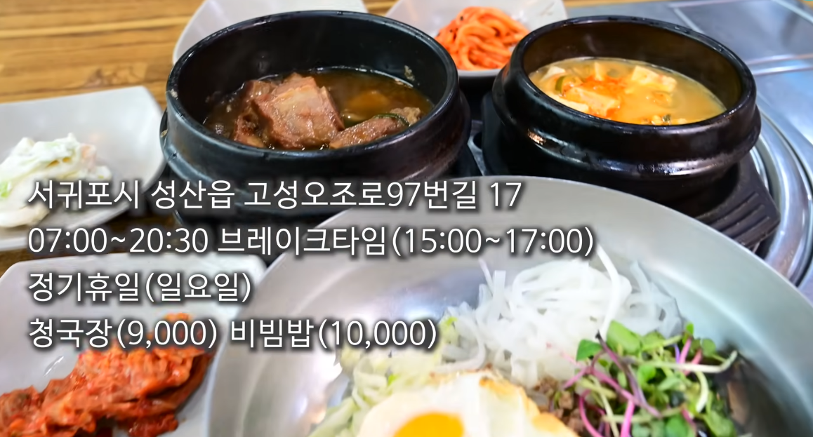 도민들이 찾는 숨은 맛집, 지은이네 밥상. 푸짐한 한 상 차림을 저렴한 가격에 즐길 수 있는 곳이에요. 비빔밥, 청국장, 갈비찜까지 제공되며, 특히 달짝지근한 갈비찜 국물은 밥 한 공기를 추가하게 만드는 마성의 맛입니다. 관광식당과 차별화된 가성비 한식 맛집이에요.