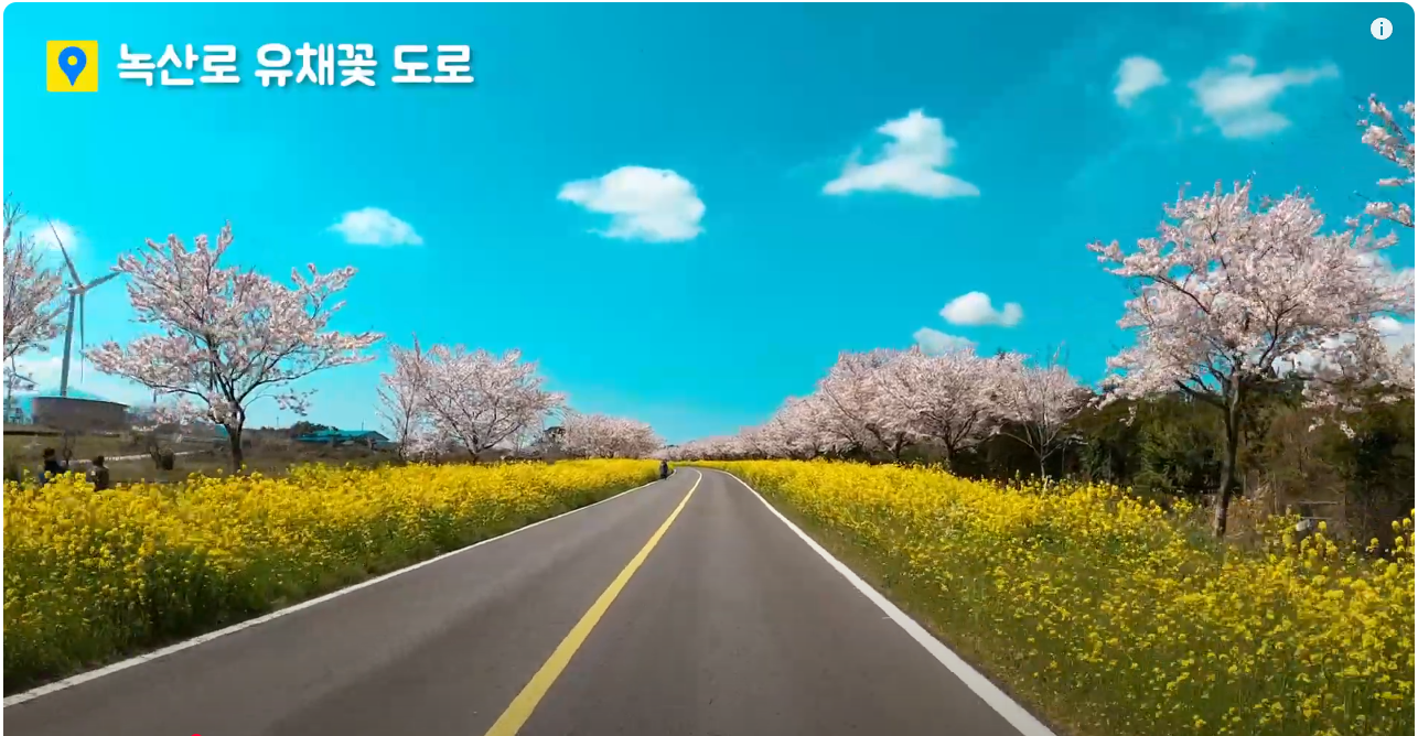 제주도에서 벚꽃을 제대로 즐기려면 이곳, 표선면 가시리에 위치한 녹산로를 꼭 가봐야 해요. 사실 이곳은 벚꽃뿐만 아니라 유채꽃도 함께 피는 곳이라, ‘봄의 종합 선물세트’ 같은 느낌이에요. 파란 하늘 아래로 분홍색 벚꽃이 흐드러지게 피고, 그 아래로 노란 유채꽃이 끝없이 펼쳐져 있는 모습이 정말 황홀합니다.