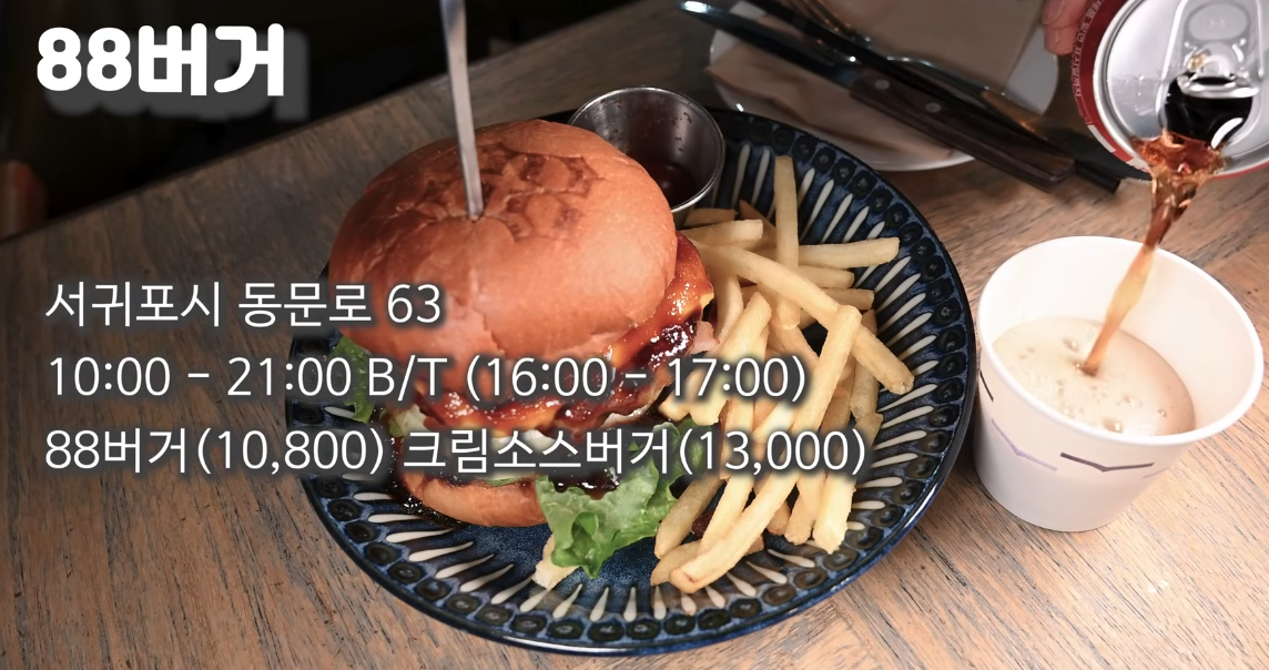 버거를 좋아하는 사람이라면 88버거는 필수 방문지입니다! 수제 버거는 흑돼지 패티와 두툼한 빵, 풍성한 소스가 어우러져 정말 맛있어요. 비주얼이 너무 예뻐서 인증샷을 남기고 싶을 정도랍니다. 육즙 가득한 패티와 신선한 재료 덕분에 맛이 정말 풍부해요. 🍟