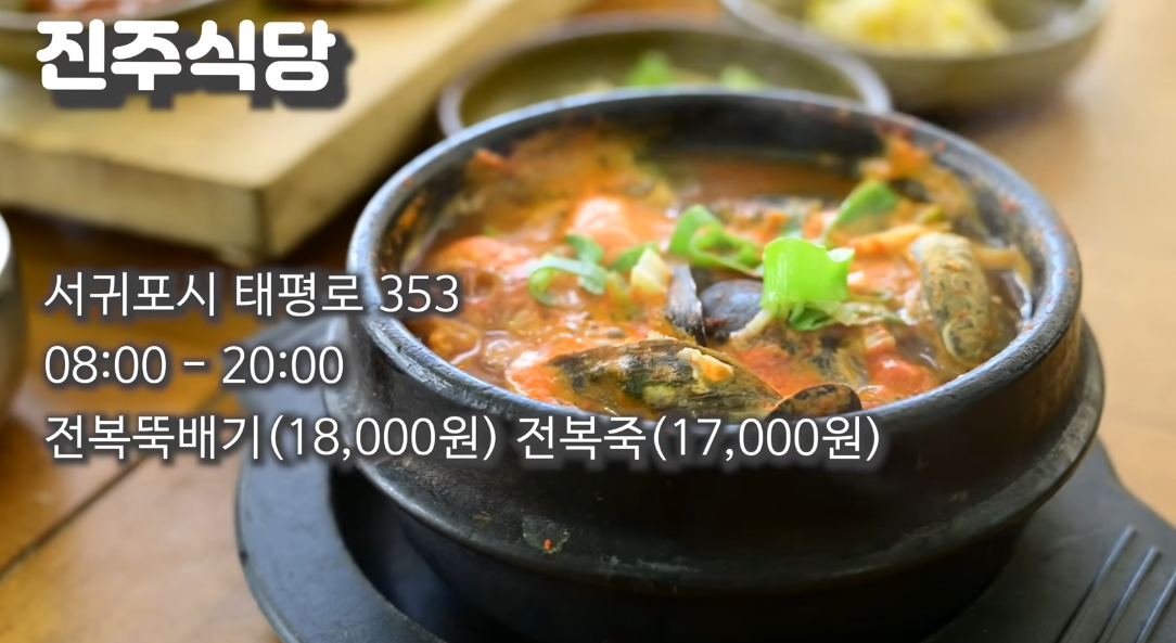 진주식당은 전복뚝배기와 전복죽으로 유명한 곳이에요. 해물 뚝배기에는 신선한 전복과 다양한 해산물이 들어가서 시원한 맛을 느낄 수 있어요. 식사 후 전복죽으로 마무리하면 제주 여행의 진미를 제대로 즐길 수 있답니다. 🍲