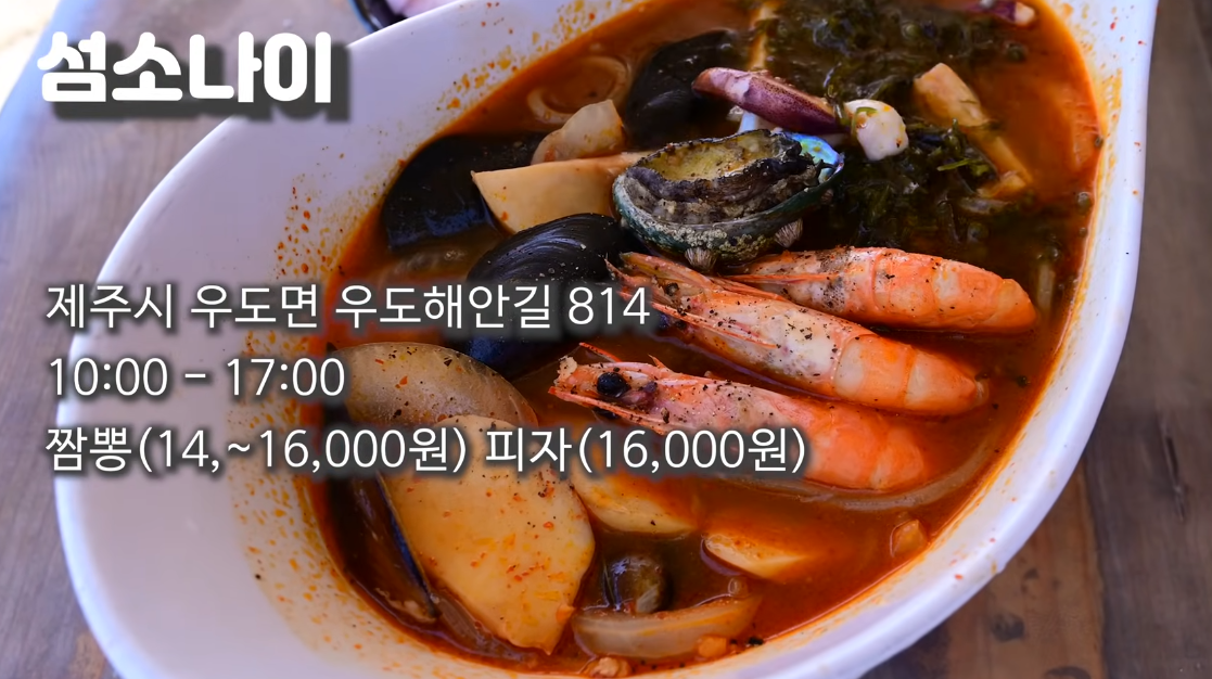 우도에서 가장 핫한 맛집 중 하나인 섬소나이는 오픈 전부터 긴 줄이 늘어설 만큼 인기 있는 곳이에요. 대표 메뉴는 빨간 짬뽕과 백짬뽕인데요. 12시간 우려낸 육수와 우도 특산물인 톳을 사용한 면발 덕분에 국물이 진하고 깊은 맛을 자랑합니다.