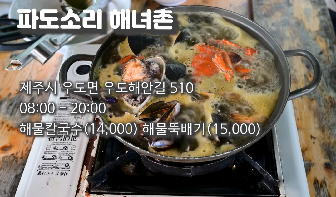 우도에서 고민 없이 들어가도 만족할 수 있는 맛집, 파도소리 해녀촌! 이곳의 해물칼국수는 가성비 최고라고 불릴 정도로 양도 푸짐하고 맛도 훌륭해요.