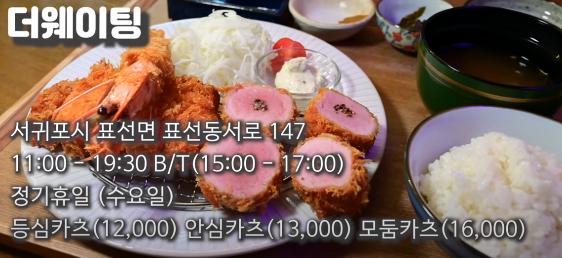 돈가스를 좋아한다면 '더 웨이팅'은 무조건 들러야 할 곳이에요. 제주도에서도 다섯 손가락 안에 든다는 소문이 있을 정도로 유명하죠. 고소하고 바삭한 튀김옷에 육즙 가득 머금은 숙성 고기! 😋 특히 특등심카츠는 수량 한정이라 빨리 가지 않으면 못 먹을 수도 있어요. 감칠맛 나는 소바도 함께 즐겨보세요.