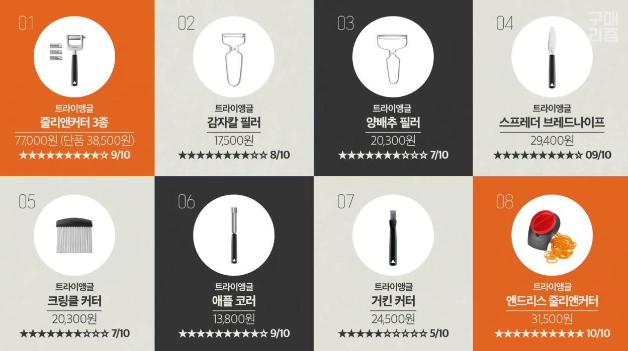 특히 주방도구를 매일 사용하는 분이라면 트라이앵글 제품이 주는 묵직한 신뢰감을 분명 느끼실 수 있을 거예요. 오늘 소개한 16가지 제품 중 3개 정도를 제외하면 대부분 높은 만족도를 줬던 것도 그런 이유입니다.