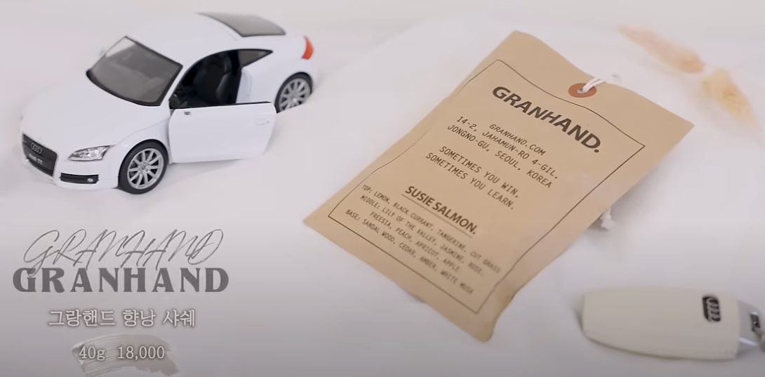 몸에 뿌리는 향수 브랜드로 유명한 그랑핸드의 샤쉐 제품이에요. 차량 전용은 아니지만 향이 정말 좋아요! 운전석 뒤에 걸어두면 향이 은은하게 퍼지고, 디자인도 빈티지해서 감성 가득해요. 특히 '수지 살몬' 향은 플로럴한 과일 향과 머스크 향이 조화롭고, 선물용으로도 인기가 많아요. 그 외에도 마린 오키드, 비올레뜨 같은 희소성 있는 향도 있으니 다양하게 즐겨보세요 🌼