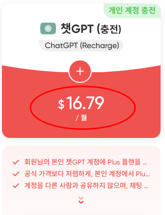 - 공식 가격 대비 합리적인 비용 – 오픈AI 공식 사이트에서 직접 결제하는 것보다 저렴한 가격으로 같은 플랜을 이용할 수 있어, 장기적으로 비용 절감 효과가 큽니다.