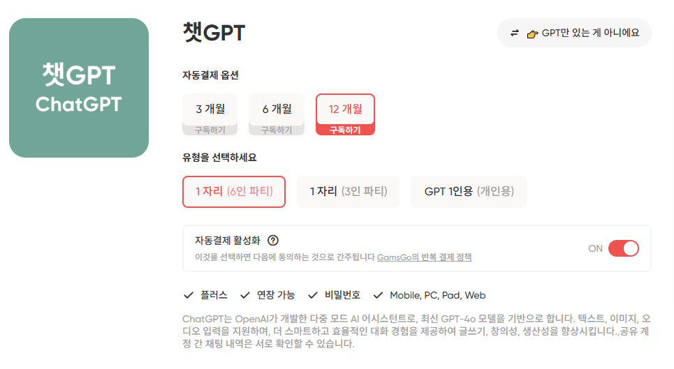 겜스고를 통해 쳇지피티 유료 버전을 보다 저렴하게 이용해 보세요.