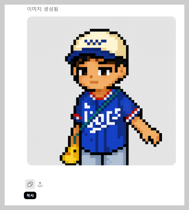 5. 이미지가 생성되고 “픽셀 느낌이 부족하다” 싶으면 "Can you regenerate this in true pixel style?"라고 추가로 요청해 보세요. 픽셀 스타일로 재생성해 줄 거예요.
