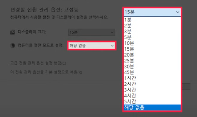 1. 고성능 전원 설정으로 성능 끌어올리기