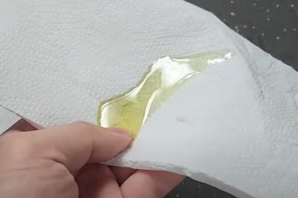 추가로, 닦은 후 다시 식용유를 묻힌 키친타월로 닦아보아도 묻어나지 않는다면 연마제 제거 완료입니다.