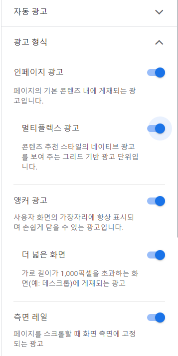 - 아래 광고 형식 클릭 → 모든 광고 활성화