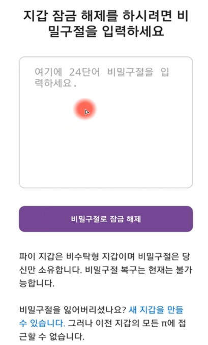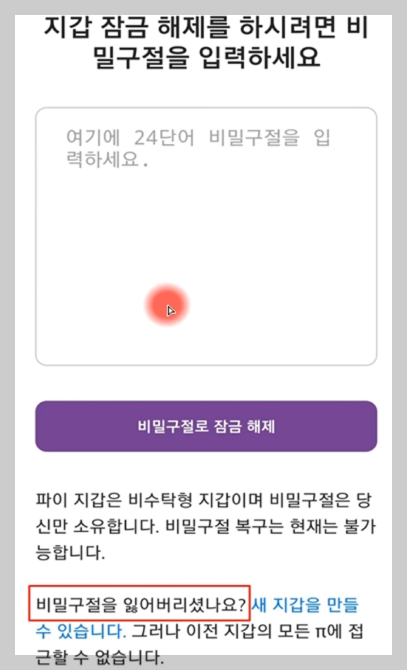파이 월렛(Pi Wallet)의 비밀 구절(24개의 단어)은 지갑의 소유권을 증명하는 중요한 정보입니다. 만약 비밀 구절을 분실한 상태에서 로그아웃되면, 해당 지갑을 다시 사용할 수 없게 됩니다. 이를 방지하기 위해 비밀 구절을 안전한 장소에 백업해 두는 것이 필수적입니다.