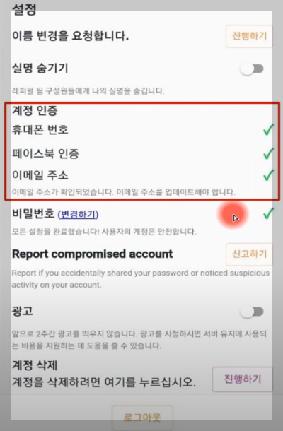 휴대폰 번호 및 페이스북 인증 필요 여부