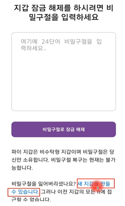 파이 월렛(Pi Wallet)의 비밀 구절(24개의 단어)은 지갑의 소유권을 증명하는 중요한 정보입니다. 만약 비밀 구절을 분실한 상태에서 로그아웃되면, 해당 지갑을 다시 사용할 수 없게 됩니다. 이를 방지하기 위해 비밀 구절을 안전한 장소에 백업해 두는 것이 필수적입니다.