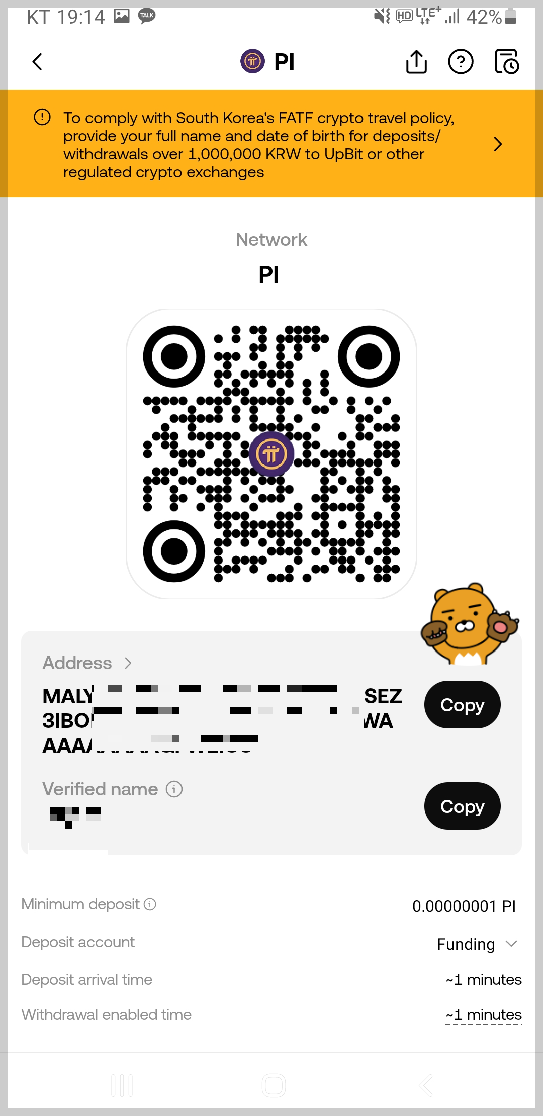 ② 파이코인(PI) 검색 및 입금 주소 확인