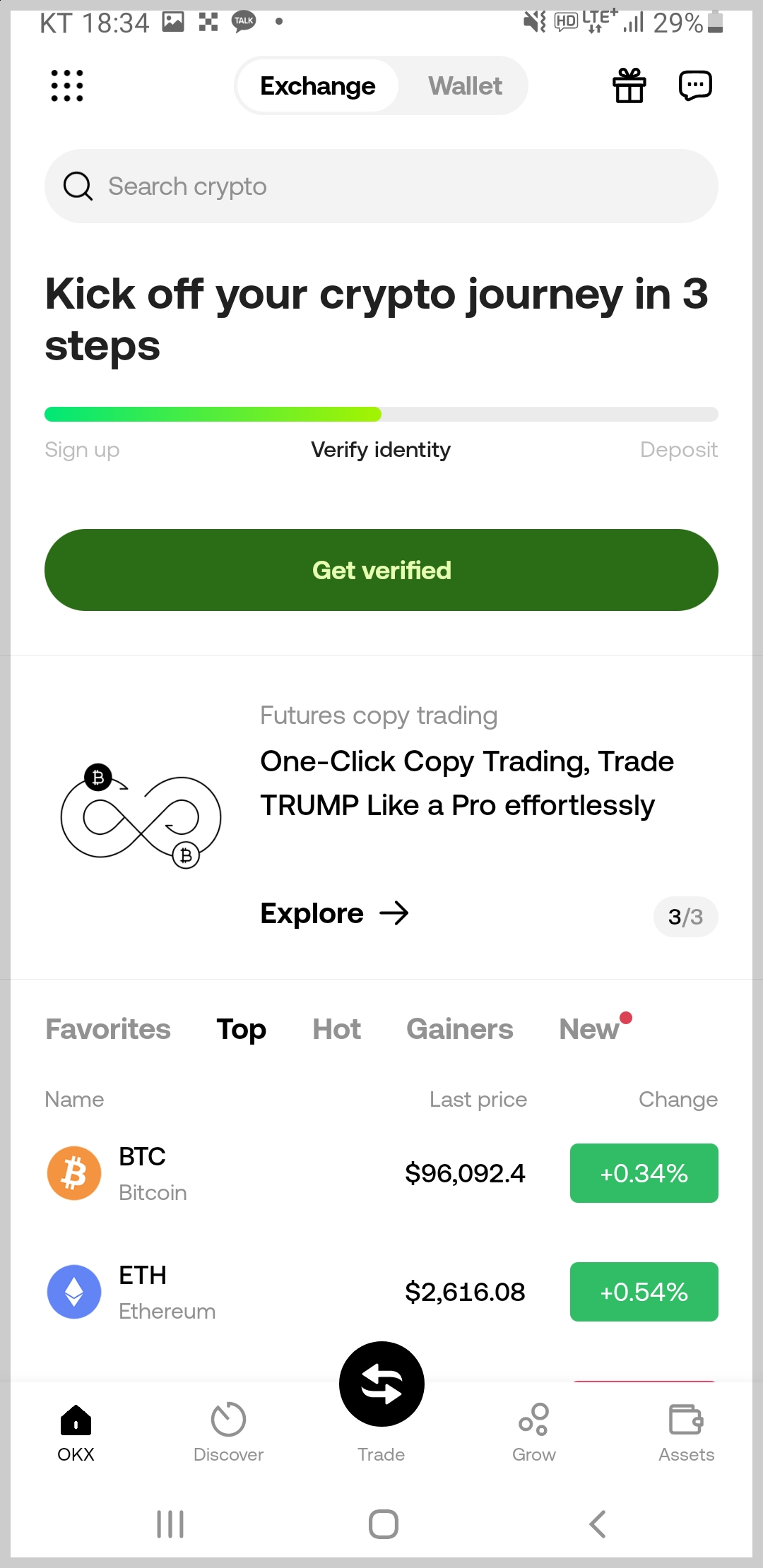 - OKX 앱 또는 웹사이트에서 ‘Get verified’ 버튼을 클릭합니다.