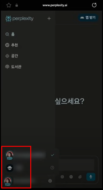 2. 메뉴 하단에서 퍼플렉시티 AI를 선택합니다.