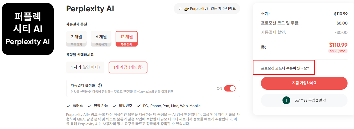 퍼플렉시티(Pro) 반값 구입! 겜스고 가입부터 실사용 후기까지!