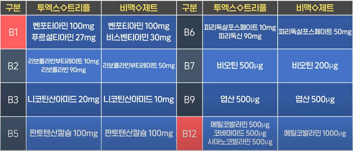 성분 비교 분석 (비타민 B군 중심)