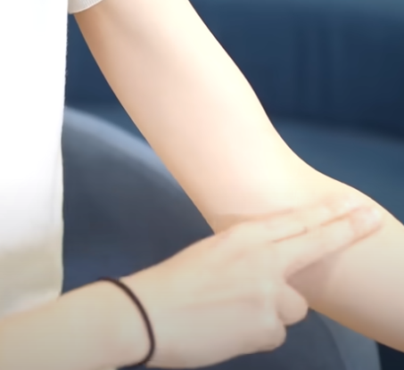 - 팔 접히는 부위(오금)를 손가락 두 개로 10초간 문지른 뒤