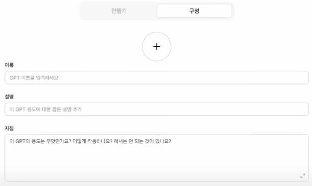 - 이름, 설명, 지침 설명(최대한 자세하게 입력)