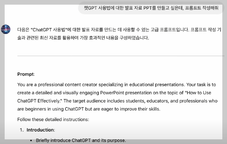 챗GPT를 효과적으로 사용하려면 질문을 잘해야 합니다. 하지만 처음 사용하는 사람들은 어떤 식으로 질문해야 할지 감이 오지 않을 수도 있습니다. 이 GPT는 최적의 프롬프트를 자동으로 작성해 주어, 원하는 답변을 더 쉽게 얻을 수 있도록 도와줍니다.