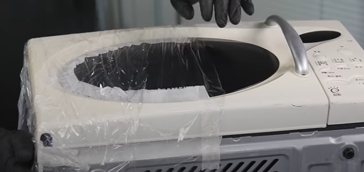 전자레인지는 황변이 심한 쪽에 산화제를 꼼꼼하게 바르고 랩으로 씌운 다음, UV 라이트를 쬐어주었어요. 하루, 이틀… 시간이 지나면서 색이 점점 밝아지더니 3일쯤 지나니 확실히 하얘졌습니다. 특히 랩으로 덮은 부분과 그렇지 않은 부분의 차이가 확연하게 보이더라고요.