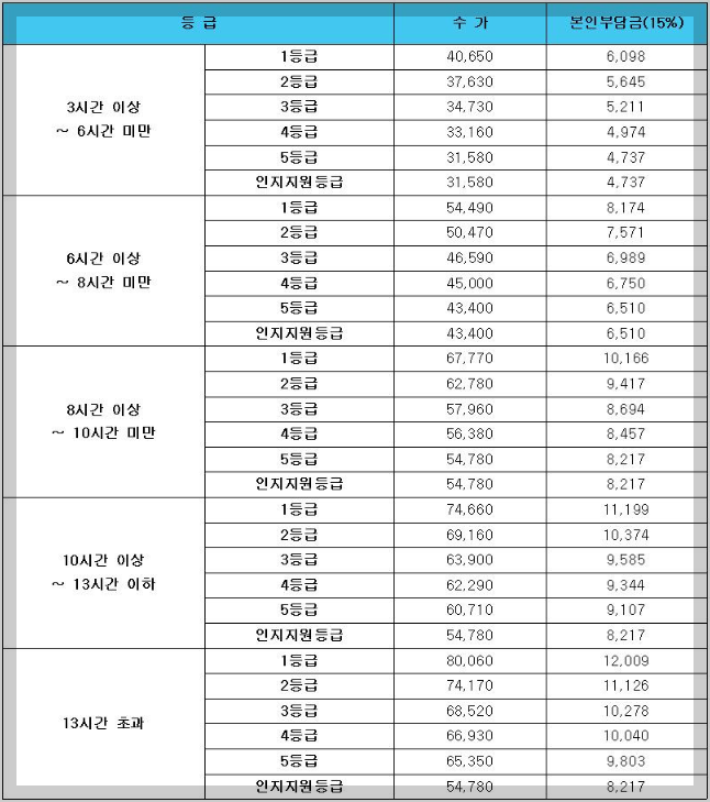 주간보호센터 이용료는 장기요양 등급에 따라 다르게 책정됩니다. 어르신이 장기요양 등급을 받았다면 본인 부담금이 낮아지며, 대부분 85%를 건강보험공단에서 지원하고 15%만 본인 부담하면 됩니다.