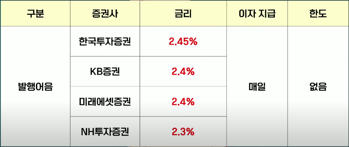 - CMA: 한국투자증권 (2.45% 발행어음형)