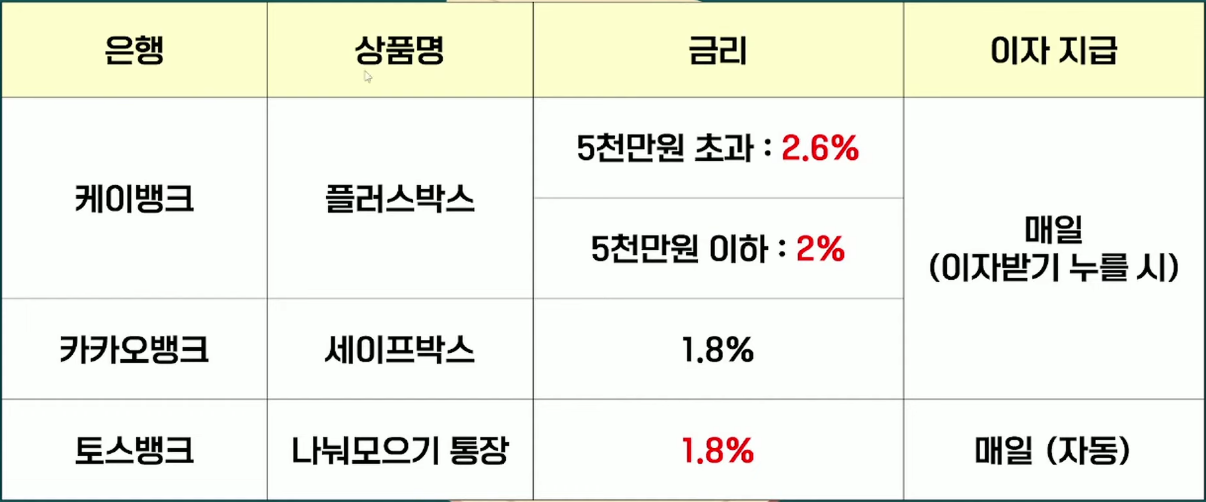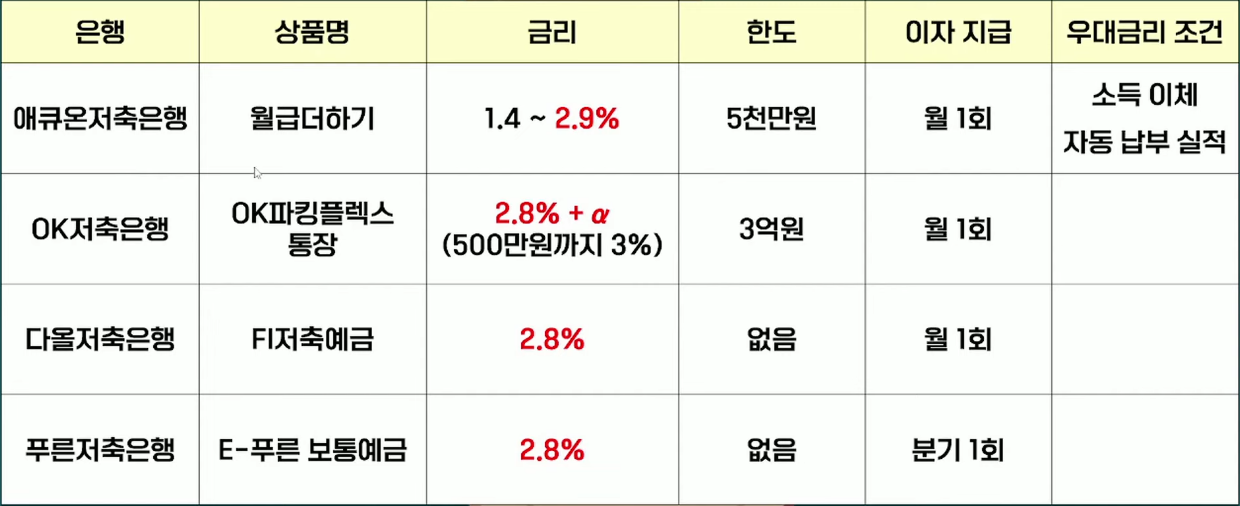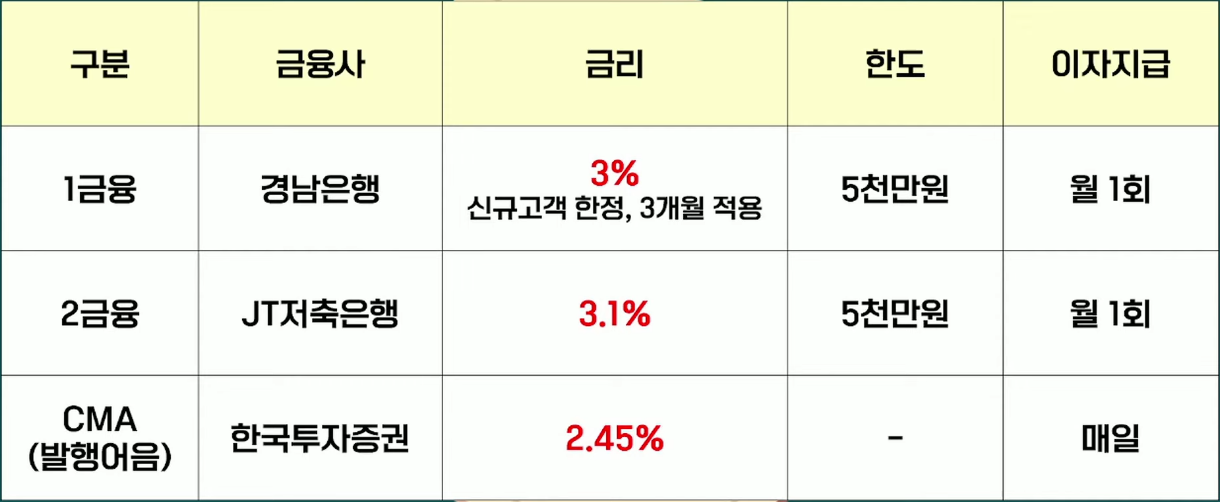 - 저축은행: JT저축은행 (3.1%, 무우대 조건)