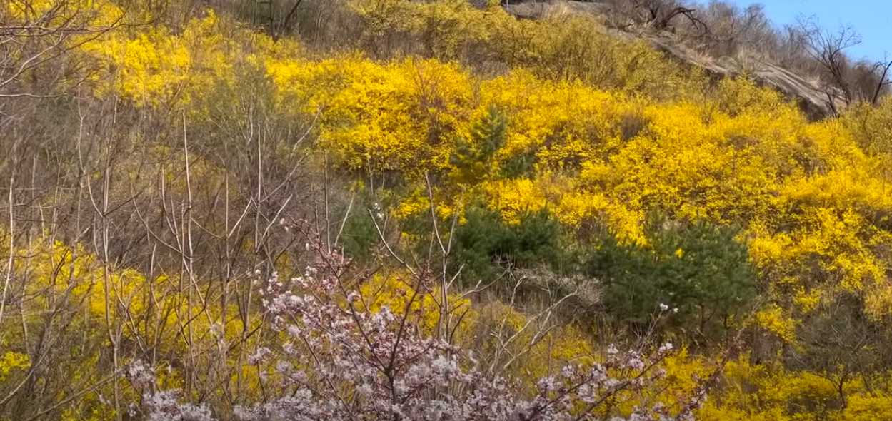 특히 4월 초에는 개나리와 산수유가 만개하며 노란 물결을 이루고, 뒤이어 벚꽃이 피어나면서 더욱 화사한 분위기를 자아냅니다. 등산 초보자도 쉽게 오를 수 있어 가볍게 다녀오기 좋은 곳입니다.