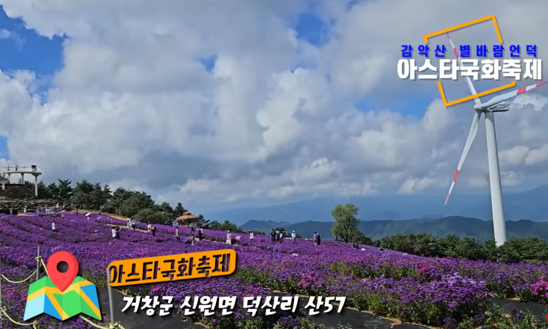 900m 고지에 펼쳐진 보랏빛 아스타 국화밭과 거대한 풍력발전기의 조합은 마치 유럽에 온 듯한 착각을 불러일으켜요. 특히 9월 말~10월 초 절정 시기엔 인생샷 찍기 딱 좋은 시기랍니다. 주차도 무료, 입장료도 없어 부담 없이 떠날 수 있어요.