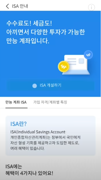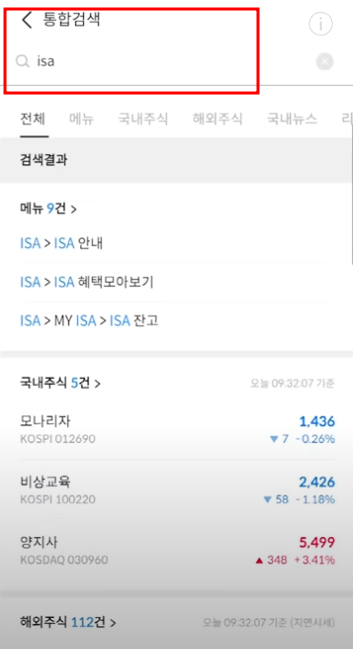 가입은 증권사 앱에서 통합 검색 창에서 ‘ISA’ 검색만 해도 간단하게 가능해요. 이미 쓰고 있는 증권사가 있다면 거기서 만드는 게 관리하기도 편하겠죠.